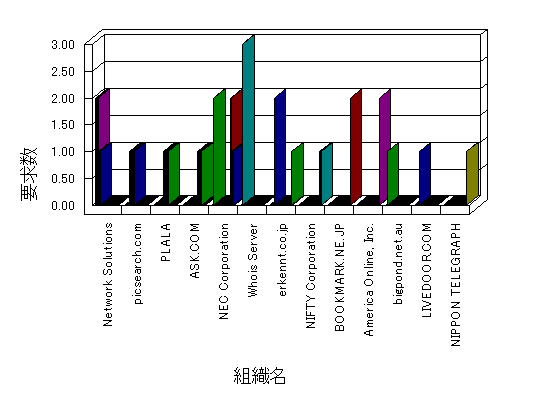 組織ユーザーにインターネット接続を提供する、商用または非営利団体、学術・行政機関などの、インターネット ドメイン で識別される団体や組織です。Microsoft Site Server Analysis は同じ組織に登録されたすべてのドメインを 1 つの組織としてグループ化します。ドメインがデータベースで使用できない場合は、1 つのインターネット ドメインが 1 つの組織を識別するのに使用されます。