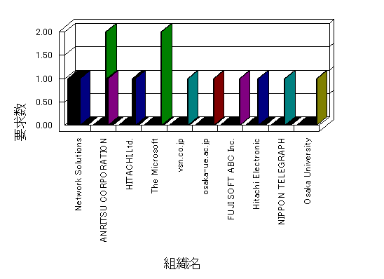 組織ユーザーにインターネット接続を提供する、商用または非営利団体、学術・行政機関などの、インターネット ドメイン で識別される団体や組織です。Microsoft Site Server Analysis は同じ組織に登録されたすべてのドメインを 1 つの組織としてグループ化します。ドメインがデータベースで使用できない場合は、1 つのインターネット ドメインが 1 つの組織を識別するのに使用されます。