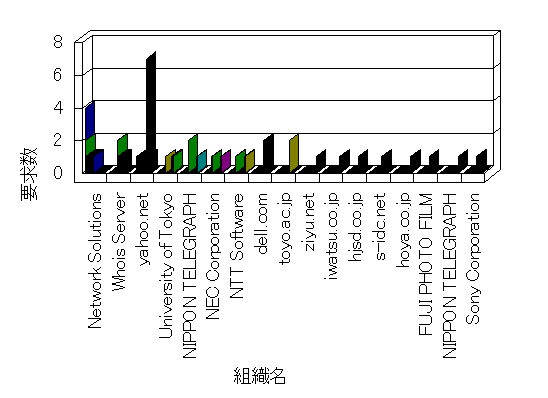 組織ユーザーにインターネット接続を提供する、商用または非営利団体、学術・行政機関などの、インターネット ドメイン で識別される団体や組織です。Microsoft Site Server Analysis は同じ組織に登録されたすべてのドメインを 1 つの組織としてグループ化します。ドメインがデータベースで使用できない場合は、1 つのインターネット ドメインが 1 つの組織を識別するのに使用されます。