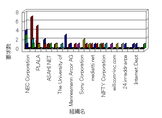 組織ユーザーにインターネット接続を提供する、商用または非営利団体、学術・行政機関などの、インターネット ドメイン で識別される団体や組織です。Microsoft Site Server Analysis は同じ組織に登録されたすべてのドメインを 1 つの組織としてグループ化します。ドメインがデータベースで使用できない場合は、1 つのインターネット ドメインが 1 つの組織を識別するのに使用されます。